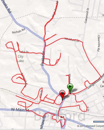 After less than a half mile, we almost got sprayed by a skunk — what I thought was a cat hanging out on the side of the road was a skunk that puffed up and hissed as we neared it. I shouted “GO DUKE” and we took off through someone’s yard. That woke me up, and I immediately started thinking about my goals for this run. Like my overarching goal is for 2011 is, today’s frame of mind was to finish it stronger than I started it.