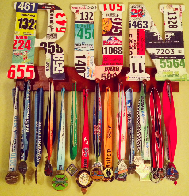 For the past decade, I have collected a lot of race bibs and medals. They get moved from place to place in a few shoe boxes and rarely get displayed. My wife got me an awesome shadow box with about 10 of my medals a few years ago, and that was a great start to displaying my medals.